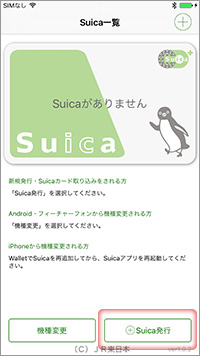 SuicaアプリケーションでSuicaの新規発行・定期券の購入