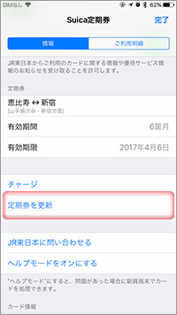 Apple PayのSuicaにてすでにご利用の定期券の継続購入ができます