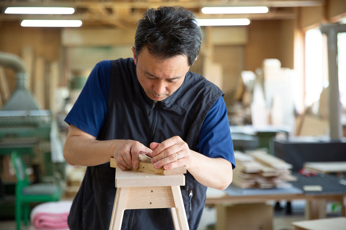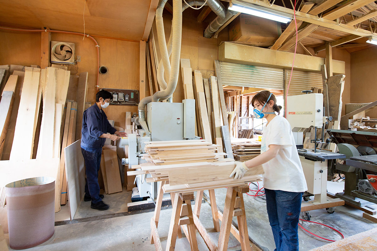 そこでもっと自分たちの所有する森の木材の魅力を知っていただけないかと、私の父を含む地元の人たちで立ち上げたのが、この工房でした。