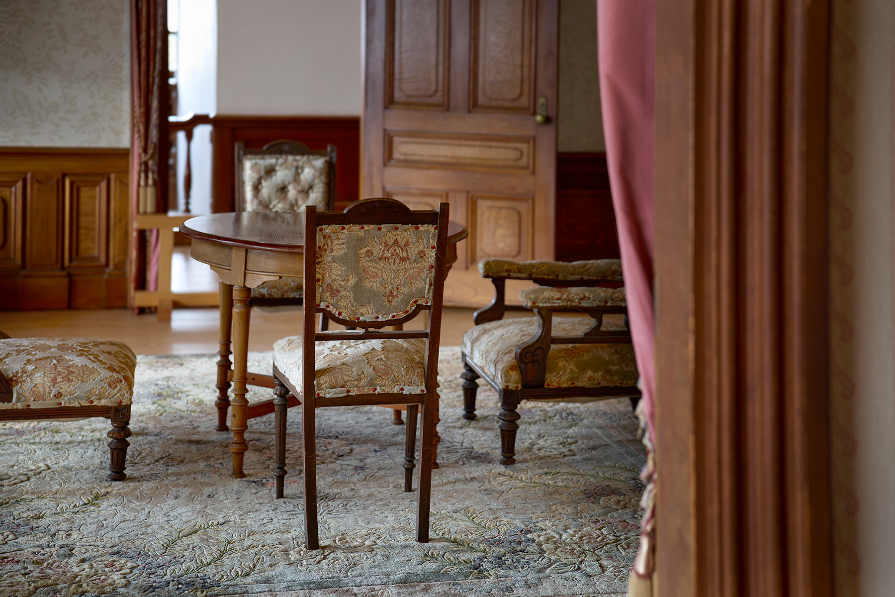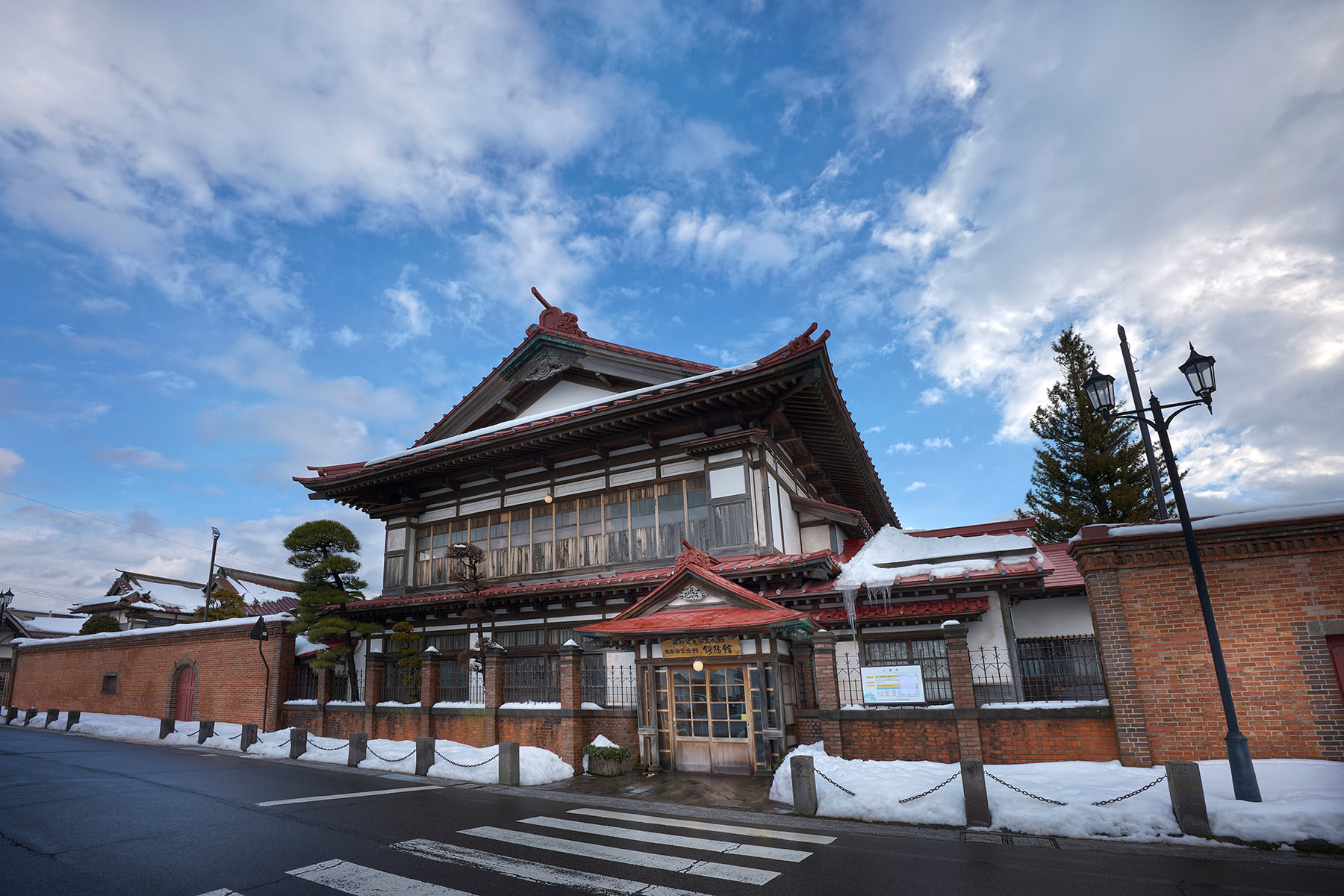 斜陽館では、「TRAIN SUITE 四季島」の2018年12月からの「冬のコース」が始まって以来、毎冬お客さまをお迎えしてきました。ここは作家・太宰治(本名・津島修治、1909‐48)の生家です。1907(明治40)年に、太宰の父である津島源右衛門が贅を尽くして建てた、広大な屋敷を保存・公開しています。源右衛門は、田畑250町歩(約75万坪)を持つ津軽の大地主で、この地に銀行や電力会社を立ち上げた実業家でもあり、戦前、衆議院議員、貴族院議員も務めた名士でした。