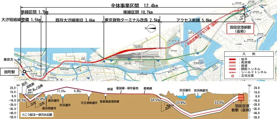 羽田空港新駅(仮称)は、空港ターミナルに直結する地下駅として設計されています。