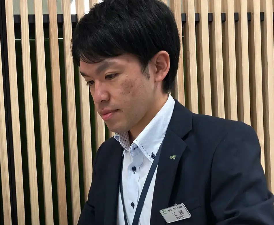 私は東北エリアの電車線・配電・再生可能エネルギー関連工事の設計を担当する部署に所属し、新駅建設や橋上駅舎化工事、そして山形新幹線福島駅構内上りアプローチ線新設プロジェクトの配電設計業務を担当しています。