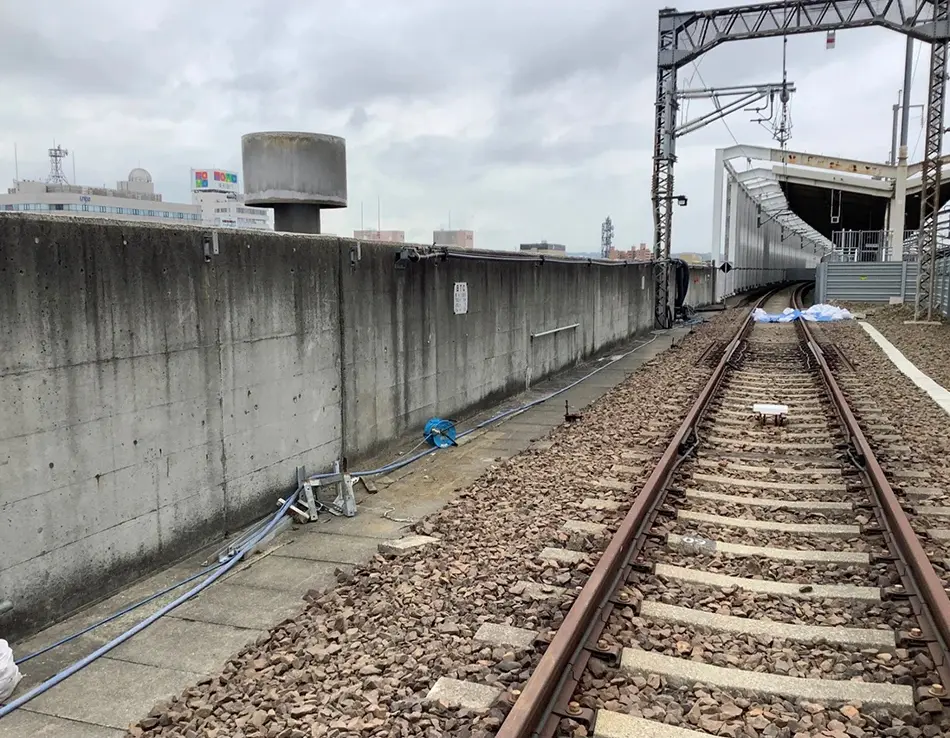 山形新幹線福島駅構内上りアプローチ線新設プロジェクトでは、指令と乗務員をつなぐ新幹線列車無線装置において、電波を送受信する漏洩同軸ケーブルがアプローチ線新設箇所に支障するため、ケーブルルート切替の検討が大きな課題の一つとなりました。通常、類似プロジェクトの施工方法を参考にしつつ当該現場に合わせた施工方法を検討しますが、今回は類似事例がなく、0から検討を進める必要がありました。現場調査から始まり、ケーブル布設方法の検討、回線品質の設計・机上計算、無線局免許変更手続き、切替当日の施工管理・機能確認等、様々な場面において社内外関係者と打合せを重ねながら着実に進め、ケーブル切替を完遂できました。