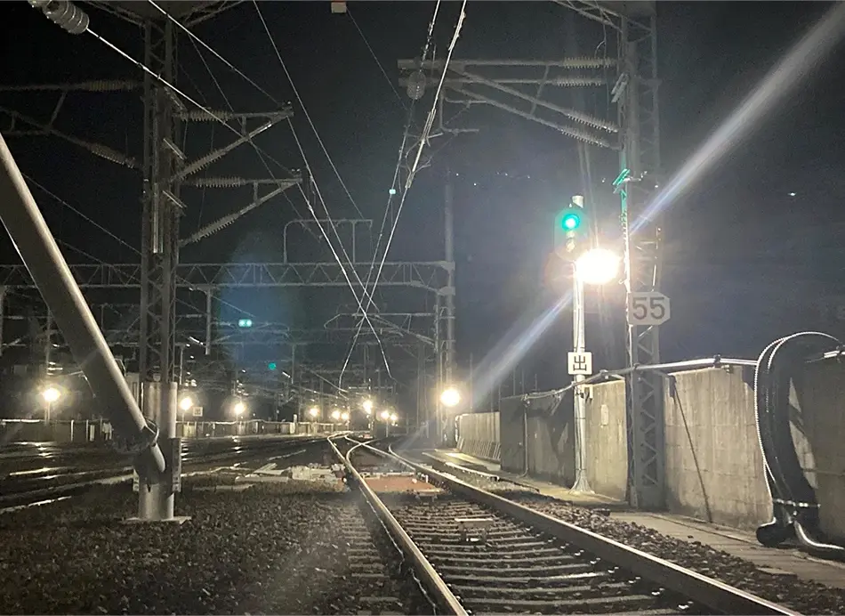 鉄道工事の多くは夜間に作業を進めています。日頃鉄道をご利用されるお客さまにとって、あまり身近に感じないかもしれませんが、人知れず工事を進め、鉄道を通して生活インフラを陰ながら支えています。そこに誇りをもって進められる充実した業務です。