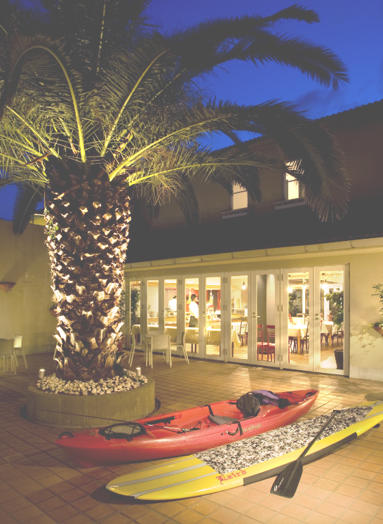 滞在先に選んだ「ホテルファミリーオ館山」でチェックインを済ませ、広々とした庭へ出ると、出迎えてくれたのはサンセットの絶景。身支度を整えて、ホテル併設レストラン『BUONO』で金目鯛のアクアパッツァに舌鼓を打ち、明日の“館山すごし”に向けて、しばしリラックス。南房総・館山エリアの主要スポットへのアクセスが良く、ゆったりとくつろげる客室を備えたこのホテルは、館山すごしの拠点として外せないのです。