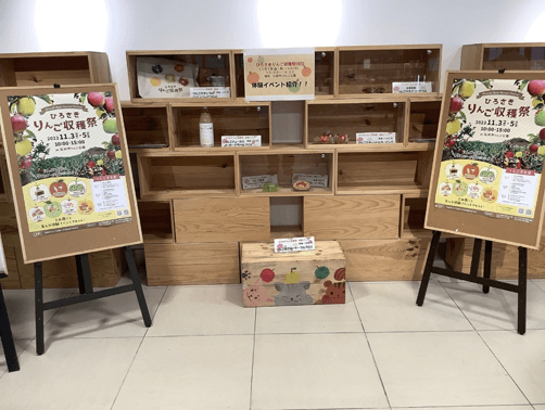 弘前市、弘前観光コンベンション協会、弘前市物産協会と連携をしながら、弘前駅構内の「津軽ラウンジ」にて、りんご製品やSDGsの関連施策を展示、駅をご利用されるお客さまに広くPRしました。