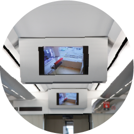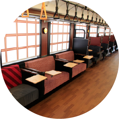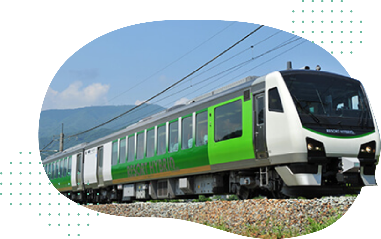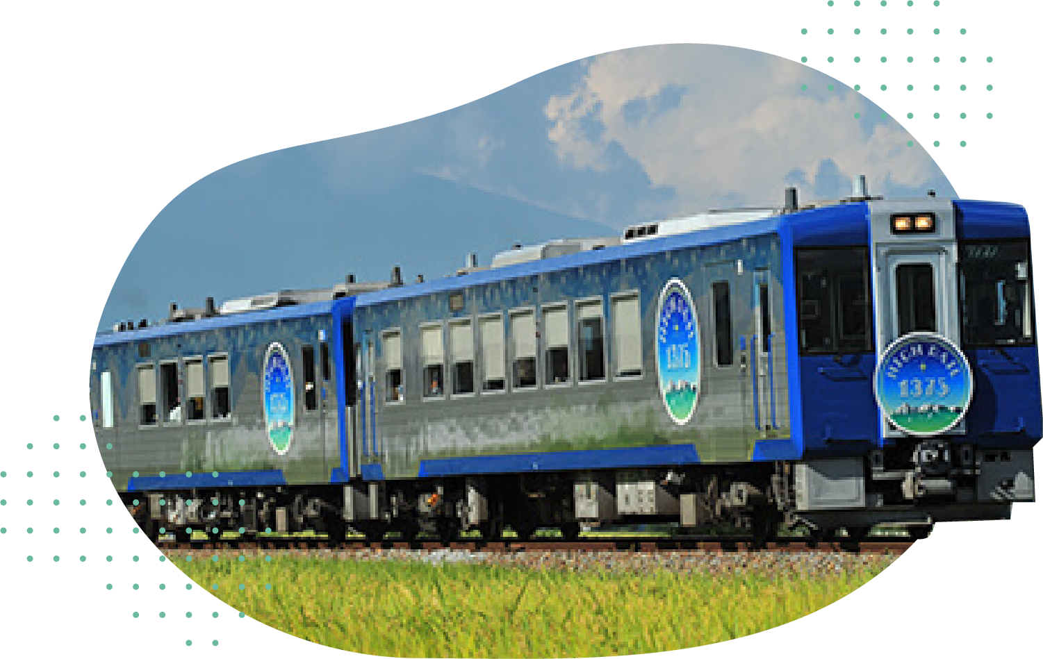 どこか懐かしいふるさとの風景をお楽しみいただける飯山線。そんな風景と車内にちりばめられた茅葺き屋根の民家のデザインでホッと癒される旅をお楽しみください。