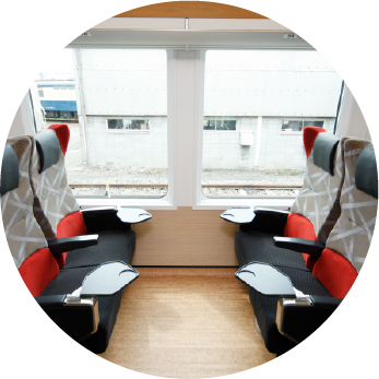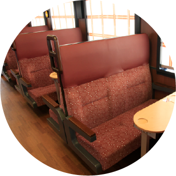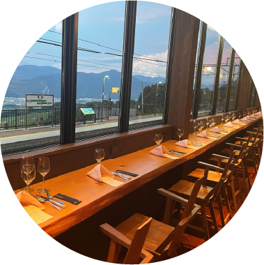 篠ノ井線と大糸線内をつないで走るリゾートトレイン。車窓に流れる絶景も、おもてなしのひとつ。マウンテンリゾートならではの贅沢なひとときをお楽しみください。