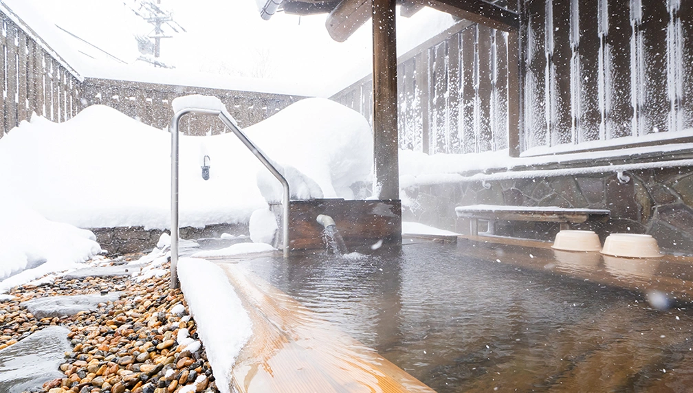 雪山で思い切り滑ったあとは、温かい湯船に身を沈めて、疲れた体をほぐす贅沢時間。温泉でじんわり温まると、冷えた体が芯からポカポカに。心も体も癒される、至福のひとときをどうぞ。