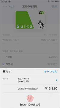 Apple PayのSuicaにてすでにご利用の定期券の継続購入ができます