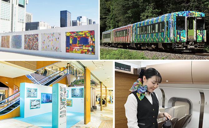 ヘラルボニー契約作家のアートを駅や鉄道、駅ビルなどの当社グループのアセットに展開し、さまざまなプロジェクトを実施しています。