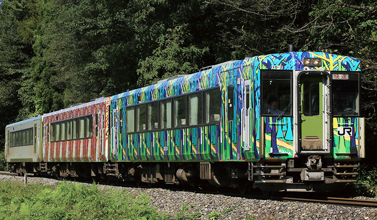 「岩手らしさ」、「東北の豊かな自然」が伝わる、岩手県出身の作家・田﨑飛鳥氏の「森の道・赤い森」「森の道・青い森」を起用したラッピング列車を運行しました。