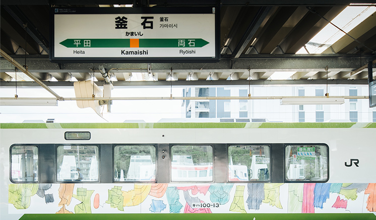 文字を独特の形にアレンジし、魅力的な造形表現を生み出す作家・小林覚氏により「釜石線70周年記念銀河ドリームライン」の文字が描かれたラッピング車両を運行しました。