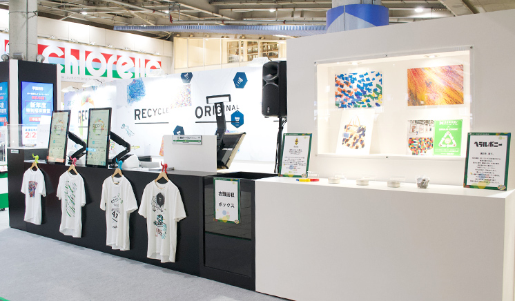 ケミカルリサイクル技術を持つ日本環境設計とコラボし、ヘラルボニー契約作家アーティストの絵をもとにオリジナルアートTシャツが作れるイベントを開催しました。