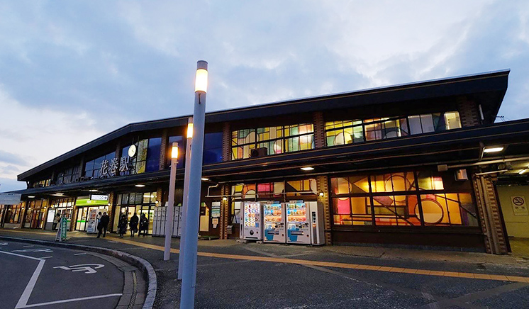花巻駅駅舎をキャンバスとした作家・八重樫季良氏のステンドグラス調のアート作品の展示(花巻市主催)に協力しました。