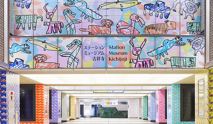 武蔵野市の福祉施設で開催されたワークショップで制作されたアートで吉祥寺駅南北自由通路のラッピングを実施しました。