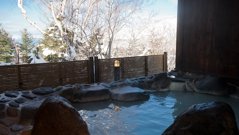 雪山で思い切り滑ったあとは、温かい湯船に身を沈めて、疲れた体をほぐす贅沢時間。温泉でじんわり温まると、冷えた体が芯からポカポカに。心も体も癒される、至福のひとときをどうぞ。