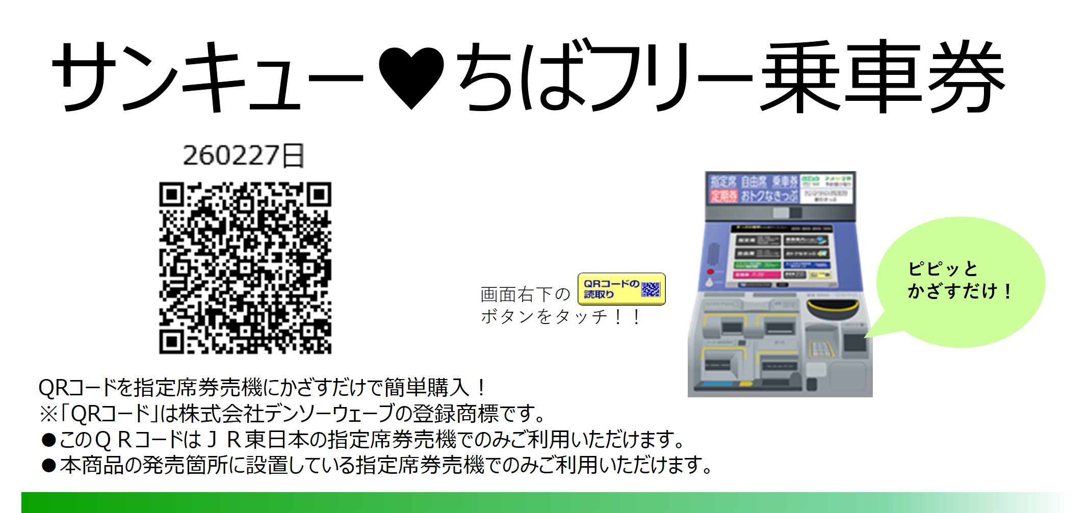 ●「サンキューちばフリーパス・フリー乗車券」購入時に、アンケートコードが記載された案内券が発行されます。