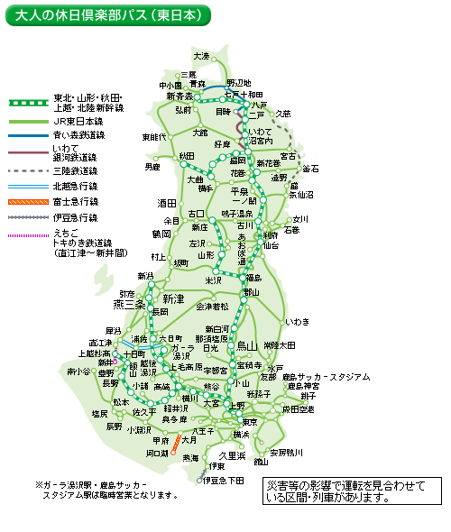 ・「大人の休日倶楽部パス(東日本)」はJR東日本のみで発売いたします。JR北海道では発売いたしません。