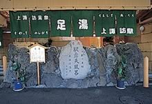 ホームの「足湯」は、上諏訪温泉を引湯した正真正銘の温泉施設。駅入場券または乗車券で利用OK。