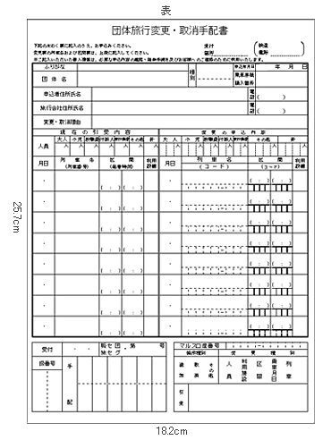 - (1)団体乗車券の購入前に変更する場合で、第46条第3項の規定により団体旅行引受書の交付を受けているときは、当該団体旅行引受書を併せて提出する。