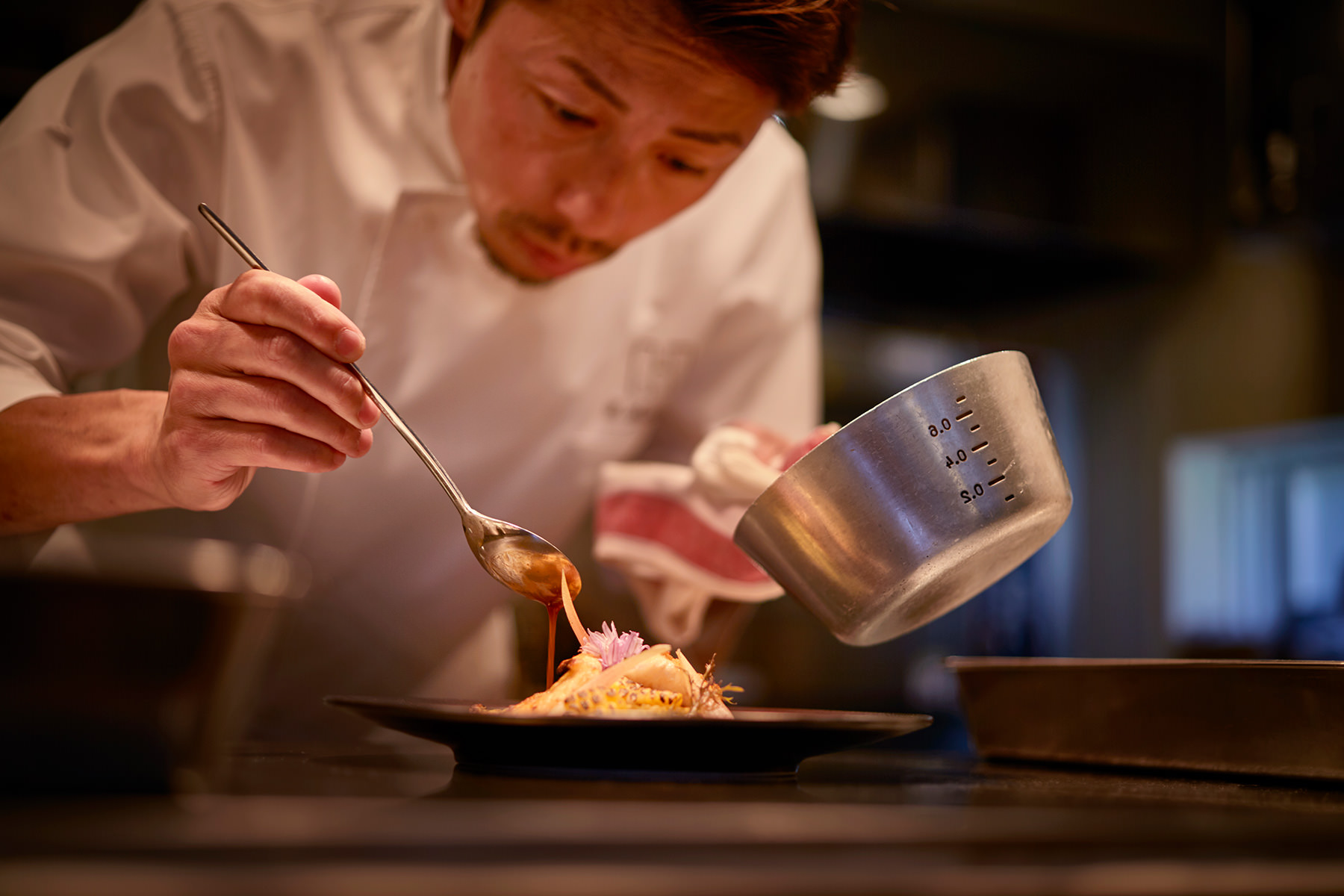 この約5年間、「TRAIN SUITE 四季島」を通じて新たな気づきや多くの出会いにも恵まれました。「TRAIN SUITE 四季島」にはさまざまな役割を担ったスタッフが関わっていますが、「お客さまの心に残る素敵な旅を届けたい」という想いは全員同じだと強く感じています。私は普段、ひとりでお店を切り盛りしているので、シェフやスタッフ、クルーの方々と料理の話をするのは楽しいですし、勉強にもなります。また、お客さまやスタッフの方からいただいた言葉を、生産者の方々にも伝えると、「今度は私たちにも食べさせてよ」と皆さんとても喜んでくれます。時々、車内でつくった料理をふるまうことがあり、「こんな食べ方があったんだね」と驚きの声をいただくと私も手応えを感じます。